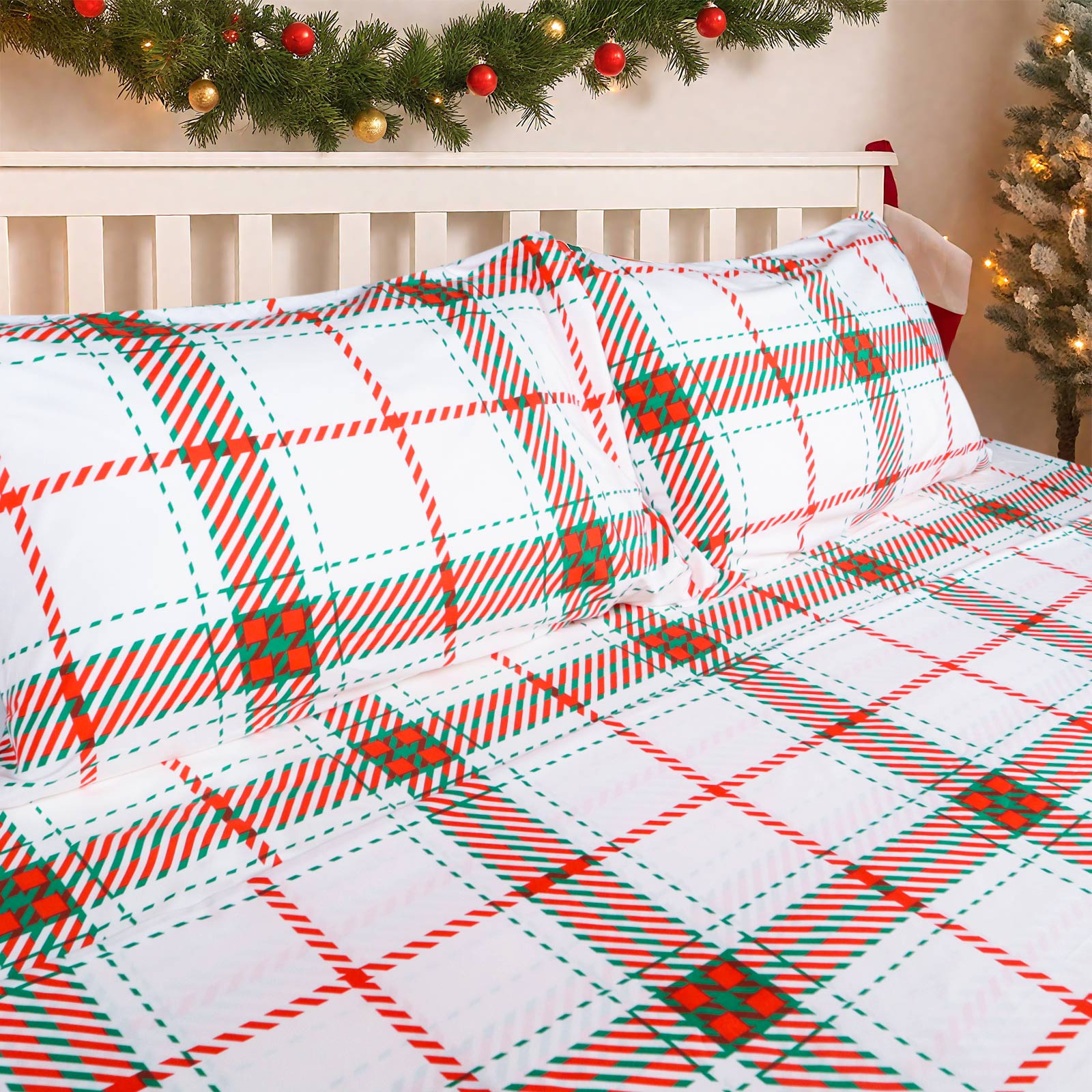 Gogreen 2025 Christmas 4 Pieces Printed Sheet Set Deep Pocket Fit 16", Breathable Microfiber Super Soft Sheet Set Cooling Sheets