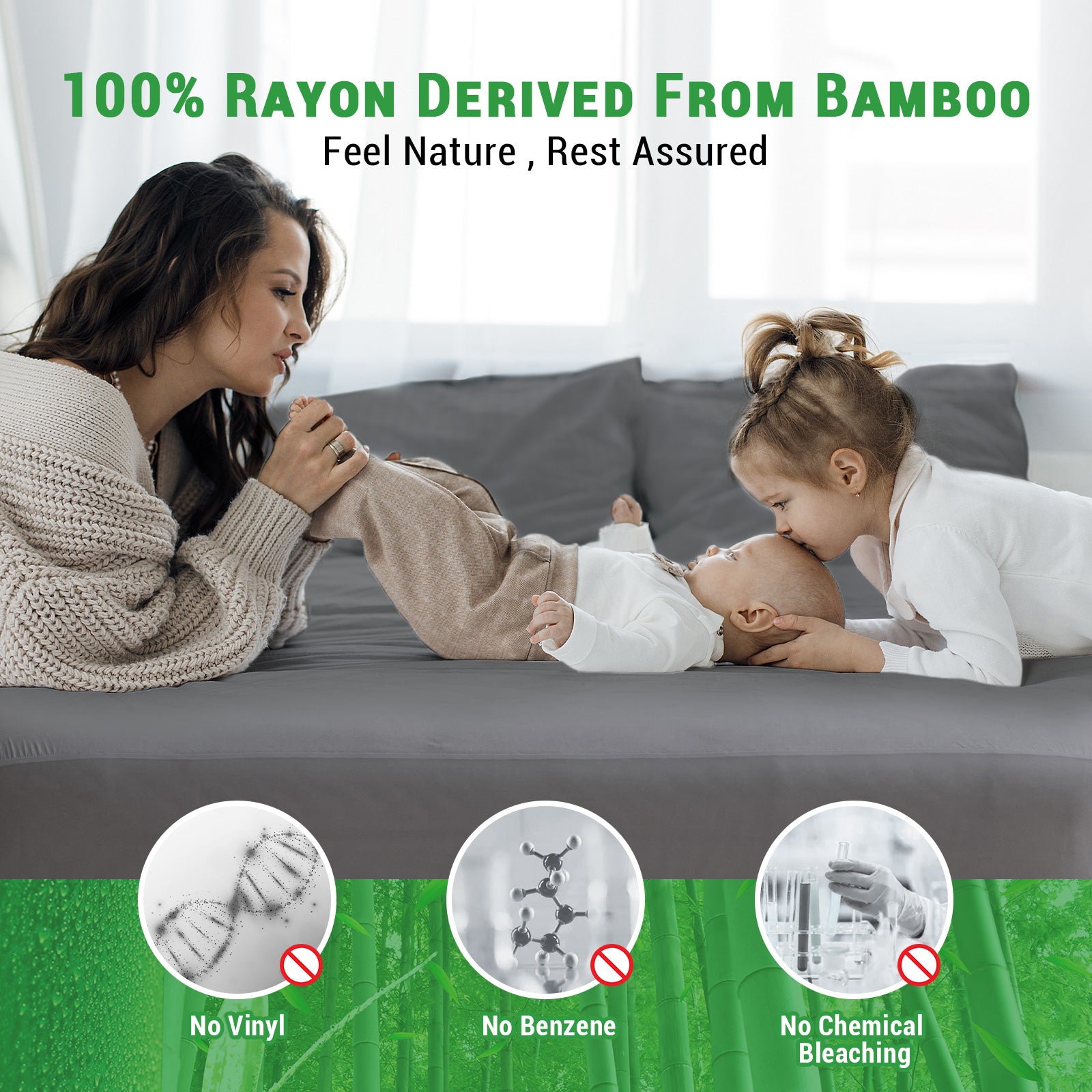 WATERPROOF & COOLING - With its breathable waterproof TPU backing, our breathable bamboo viscose bed wetting mattress protector acts as an imperceptible barrier to shield your mattress from unintentional liquids like sweat, saliva, stains, and urine, keeping it dry at all times. The design of our cooling mattress cover is breathable and has pores that are only 3–4 microns in size, which effectively keeps dust and dirt out.